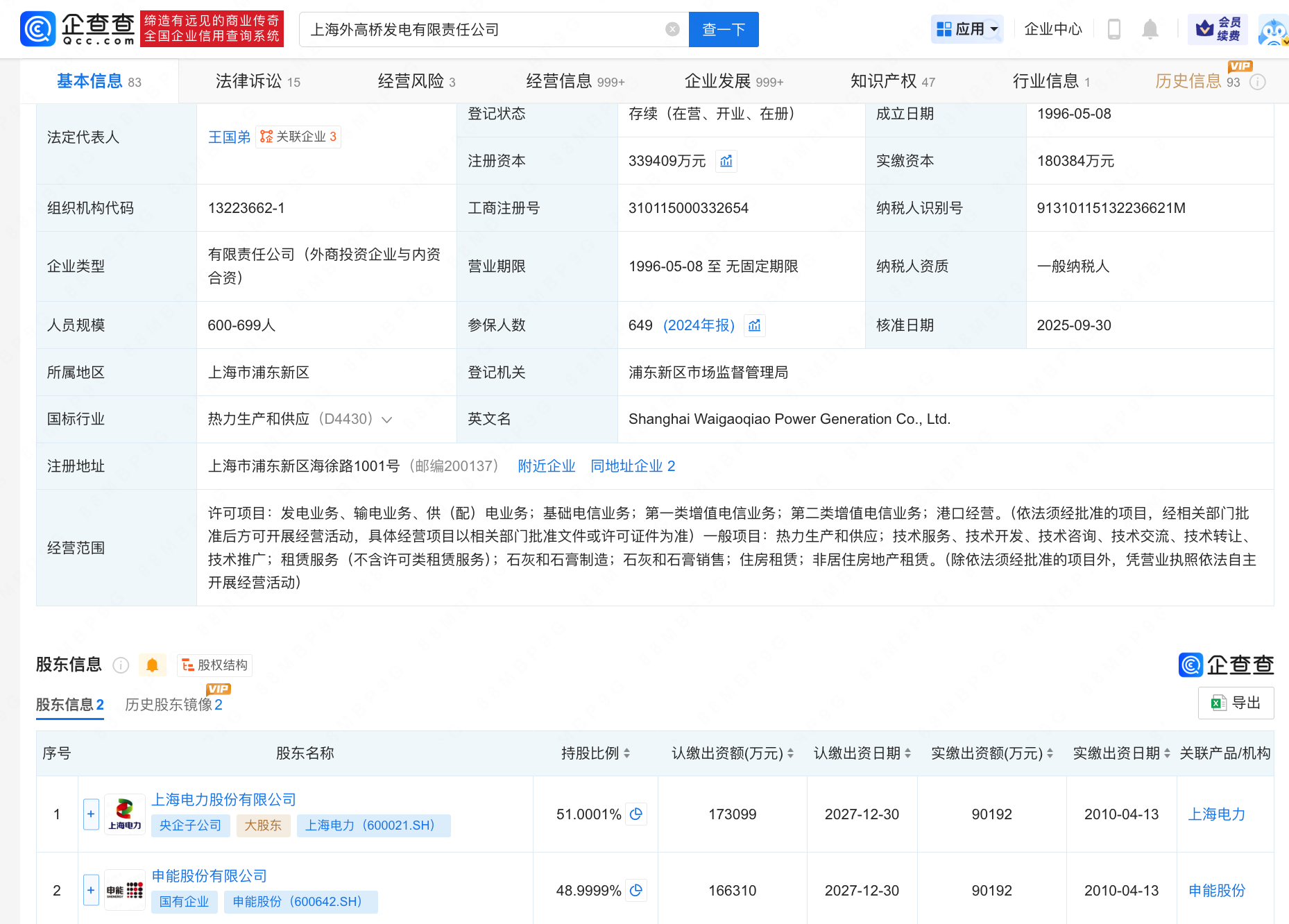 专业的股票配资官网 上海外高桥发电公司注册资本增至近34亿,增幅约88%